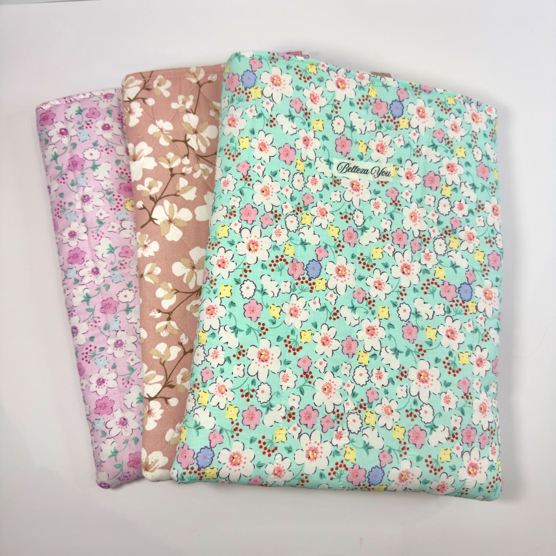 🌸 Luxe gewatteerde booksleeve Mintgroen met bloemen